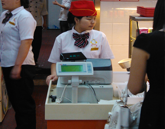 所使用K8凯发国际产品:CRDX双打印机宽带POS收银机,适合餐厅、连锁店、专卖店、精品店使用,餐饮版收银机可接厨房票据打印机。