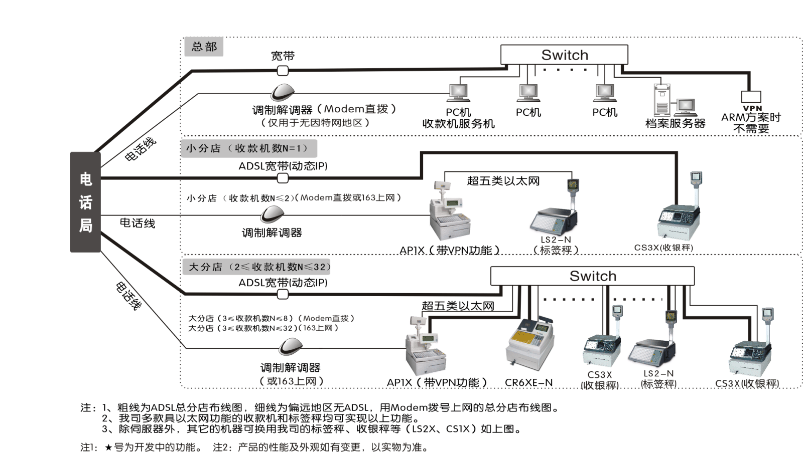 • 可选GPRS/WCDMA功能,无需布线就能把分布在各店收银点的收银数据发送至总部云服务器。