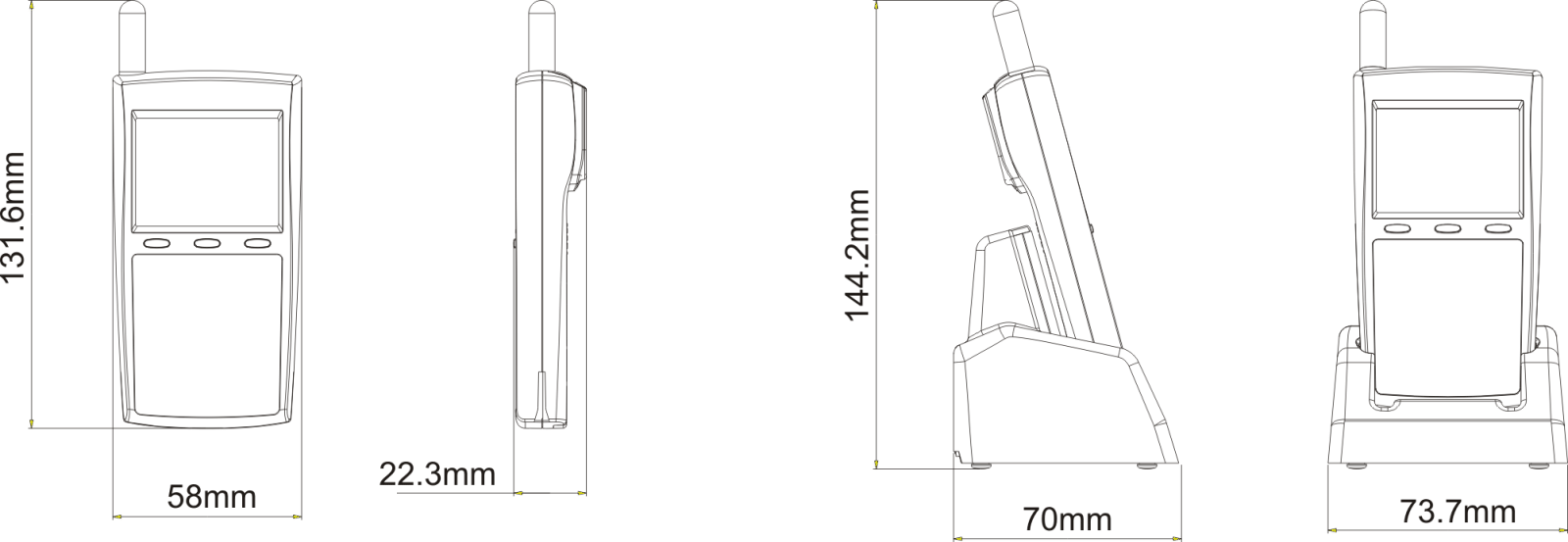 ※ 多功能充电座,即可对手持机充电亦可同时对拆下的锂电池充电,适合长时间陆续在使用之场合,且具有USB通讯功能。