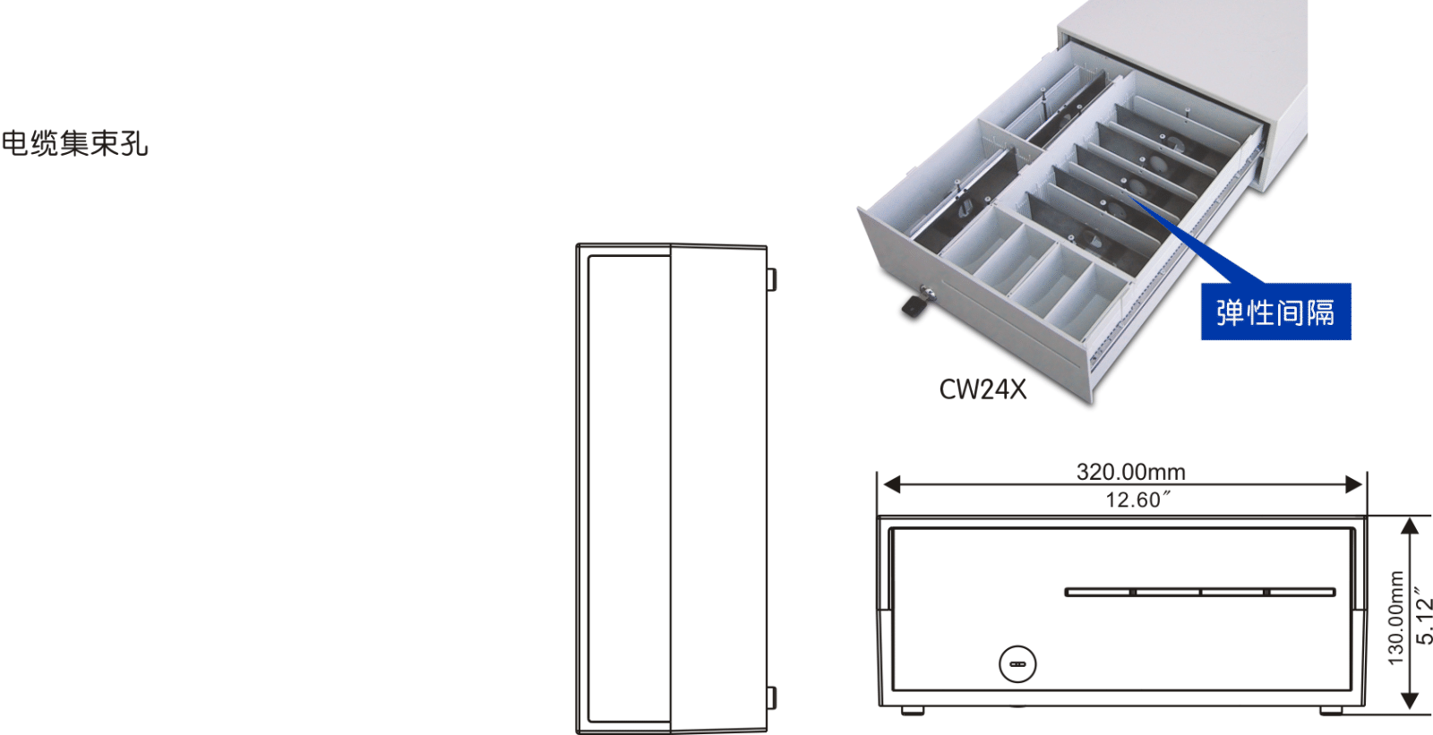 竖钞钱箱(CW2X)_收银机钱箱厂【K8凯发国际Aclas】超大纸钞容量